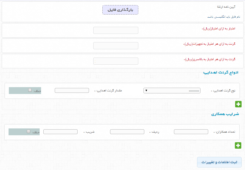 در بخش آیین نامه ارتقا، امکان بارگذاری فایل PDF وجود دارد. فایلی که در این بخش بارگزاری می شود، در بخش درخواست ارتقا برای همکاران قابل دانلود است.