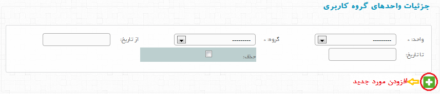 نام فیلد ضروری بودن توضیحات نام وارد کردن نام فرد به زبان فارسی و انگلیسی، ضروری است. نام خانوادگی وارد کردن نام خانوادگی فرد به زبان فارسی و انگلیسی، ضروری است. پست الکترونیک نام کاربری محل تولد تاریخ تولد نام پدر شماره شناسنامه محل صدور کد ملی جنسیت تلفن تلفن همراه کد کارگزینی پژوهشکده نام پژوهشکده ای که فرد در آن مشغول به کار است، در اینجا نوشته می شود. آدرس منزل آدرس محل کار کد پستی تلفن محل کار نمابر عدم به روزرسانی خودکار عکس از اطلاعات پرسنلی عکس ها به صورت روزانه از سامانه پرسنلی به روز می شوند. در صورت تمایل به عدم تغییر عکس، گزینه عدم به روز رسانی خودکار عکس را فعال نموده و عکس موردنظر خود را در فیلد بعدی بارگذاری نمایید. عکس در این بخش می توان عکس فرد را بارگزاری نمود. گذرواژه جدید تایپ مجدد گذرواژه که در فیلد قبلی تعریف شده است. تأیید گذرواژه جدید عضو هیأت علمی اگر فرد موردنظر عضو هیأت علمی است باید این checkbox علامت زده شود. پایه مرتبه این فیلد بیانگر موقعیت فرد در سیستم آموزشی است. جزئیات واحدهای گروه کاربری در صورتی که فرد عضو هیات علمی باشد، باید در این بخش حتما برای وی یک گروه عضو هیات علمی انتخاب شود. جهت توضیحات بیشتر به صفحهی بعد مراجعه کنید. -